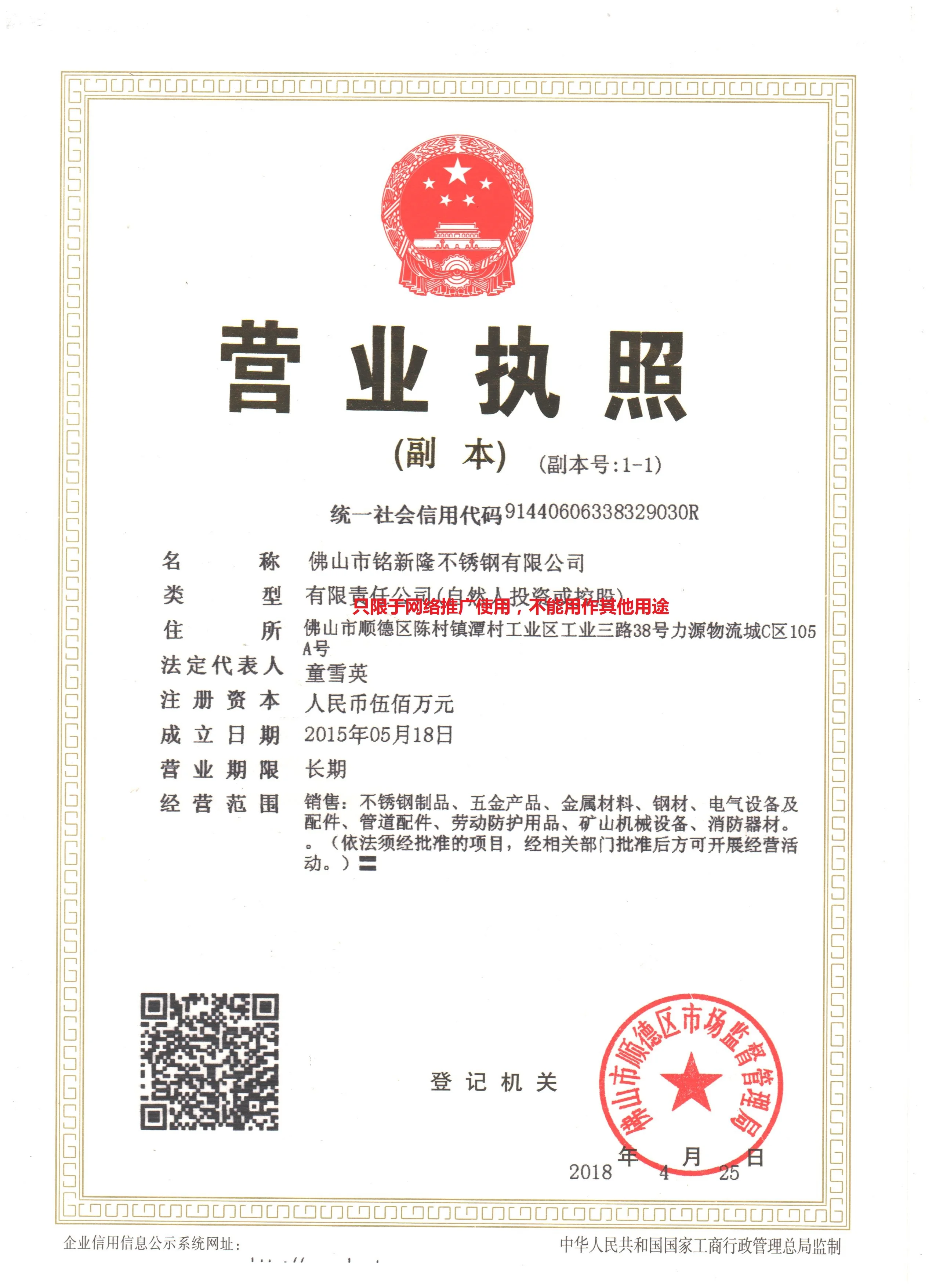 Company Name : Foshan Mingxinlong Stainless Steel Co., Ltd.